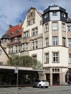 Das viergeschossige, mit einem ausgebauten Dachgeschoss ausgestattete, repräsentative Mietshaus ist in der Fassadengestaltung durch zahlreiche geometrische Jugendstilornamente und den Wechsel von verputzten und Hausteinflächen gekennzeichnet. Alle Flächen scheinen in Bewegung zu sein.