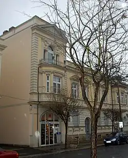 Das im Stil des Historismus gestaltete Gebäude entstand auf einem Grundstück, dass sich seit 1888 im Eigentum der Bauunternehmerfamilie Riefenstahl befand. Vermutlich führten die Riefenstahls den Bau des Hauses auch selbst durch. Stilistisch werden Gestaltungselemente des Barock und des Klassizismus zitiert.