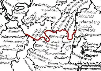 | Kursbuchstrecke: | 143 (Gesamt) 143f (Walthersdorf (Erzgeb) – Schlettau (Erzgeb)) jeweils 1934 171 (Gesamt) 171c (Walthersdorf (Erzgeb) – Schlettau (Erzgeb)) 170m (Schlettau (Erzgeb) – Scheibenberg) jeweils 1946 | ||||||||||||||||||||||||||||||||||||||||||||||||||||||||||||||||||||||||||||||||||||||||||||||||||||||||||||||||||||||||||||||||||||||||||||||||||||