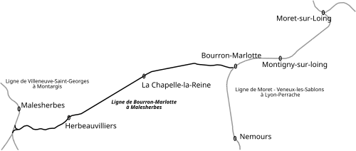 - ↑ Ligne Bourron-Marlotte-Grez - Malesherbes auf: Infrastructure ferroviaire française, Centre-Val de Loire, Île-de-France, 6. Dezember 2020