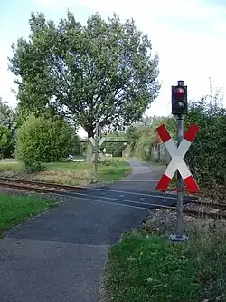 ![]() Bahnübergang Brückenstraße, im Hintergrund die Bördebahn | |||||||||||||||||||||||||||||||||||||||||||||||||||||