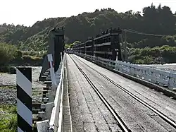 - Die Brücke über den Taramakau war ebenfalls eine kombinierte Brücke für Bahn und Straße. Sie wurde am 22. Juli 2018 für den Straßenverkehr geschlossen, als eine 25 Millionen NZ$ teure neue Straßenbrücke eröffnet wurde.[8]