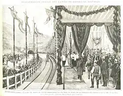 Ein Konsortium französischer Banken gründete zusammen mit der großen spanischen Eisenbahngesellschaft Norte die Compañía de los Ferrocarriles de Asturias, Galicia y León[4] (AGL), wobei Norte 15 % der Anteile hielt. Während der Bau der Bahnstrecke nach Galicien sofort auf ganzer Länge wieder aufgenommen wurde, stellte die AGL an der Bahn nach Asturien nur den einfacheren unteren Teil der Nordrampe Puente de los Fierros–Pola de Lena fertig. Das Projekt für den restlichen Teil der Nordrampe sollte überarbeitet und kostengünstiger gestaltet werden. Es wurde eine 23 km kürzere Trasse mit engeren Radien und Steigungen bis 35 ‰ vorgeschlagen. Die Idee stieß aber in Asturien auf Widerstand und in Oviedo, der Hauptstadt Asturiens, fand im März 1881 eine Demonstration gegen das Projekt statt. Später stellte sich heraus, dass die AGL tatsächlich sogar eine um 37 km verkürzte Strecke geplant hatte, deren größte Steigung zwischen Puente de los Fierros und Pajares mit einem Zahnstangenabschnitt überwunden werden sollte. Im Juni desselben Jahres lehnte die spanische Regierung beide Projekte ab und die Arbeiten am ursprünglichen Projekt wurden wieder aufgenommen. Der durchgehende Betrieb wurde am 15. August 1884 aufgenommen.