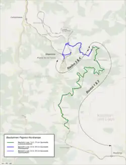 Die Baulose 3 und 4 bildeten den Streckenabschnitt vom Tunnel Nr. 41 bis Puente de los Fierros. Die Bahn für dieses Baulos wurde mit einer Spurweite von 500 mm ausgeführt. Sie begann beim Bahnhof Puente de los Fierros und führte zuerst 500 m talabwärts, wo sie den Pajares auf einer 98 m langen Hängebrücke überquerte. Auf der Nordseite verzweigte sich die Bahn in zwei Äste. Der rechte führte bis zum Osteingang des Capricho-Tunnels, der linke erreichte nach etwa 50 m den Fußpunkt einer Standseilbahn, die 350 Höhenmeter überwand. Von der Bergstation reichten die Gleise sowohl ostwärts bis zum Tunnel Nr. 41 als auch westwärts bis zum Tunnel Nr. 47.[6]