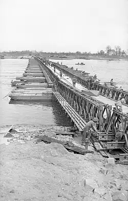 - Behelfsbrücken über den Rhein, z. B. bei Wesel (Operation Plunder); einige sind noch nach dem Krieg bis in die 1950er Jahre verwendet worden.