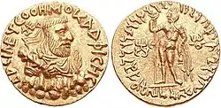 - ↑ Fabrizio Sinisi: Royal Imagery on Kushan Coins: Local Tradition and Arsacid Influences. In: Journal of the Economic and Social History of the Orient 60/6 (2017), S. 818–927, hier S. 828.