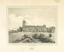 Im Jahr 1836 wurde dem Turm der Ruine ein neues Dach aufgesetzt; er wurde 1929 in alter Form wiederhergestellt. In seinen Stockwerken war im Zeitraum von 1931 bis 1945 ein Heimatmuseum untergebracht, das die Kreisverwaltung Heiligenbeil unterhielt. Die Dorfkirche hat ein eigentümliches Portal aus dem 1. Drittel des 14. Jahrhunderts. Zur 700-Jahr-Feier wurde vor dem Pfarrhaus ein Gedenkstein mit den Jahreszahlen »1239–1939« errichtet.[9]