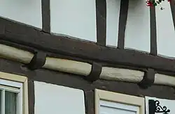 Wenn Balkenköpfe einer Deckenbalkenlage über Wand oder Mauer hinausragen, zeigen sie oft nicht nur ihre schlichte Hirnholzfläche, sondern sind in der historischen Architektur zur besonderen Verzierung von Fassaden herangezogen worden.