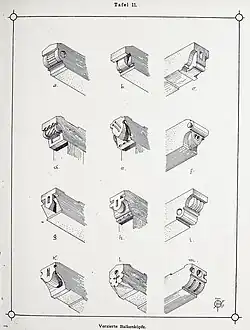 Verzierte Sparrenköpfe aus einem Zimmermanns-Lehrbuch von 1893[8] -