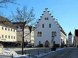 1405 erteilten bayerische Herzöge der Stadt fremden Kaufleuten die Genehmigung einer Warenniederlage, und ab 1407 bewilligten sie eine Waage.[2] Um die Waren der Handelsströme hier lagern zu können, wurde 1420 dieses Gebäude gebaut.[2] Die Lagergebühren waren eine wichtige Einnahmequelle für die Stadt. Nach dem Stadtbrand vom 22. Mai 1493 ließ man das Gebäude bis 1515 wieder aufbauen.[3] Nachdem es sich bereits im Verfall befunden hatte, wurde zwischen 1858 und 1860 ein Drittel des Bauwerks abgetragen.[1]