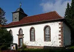 Mittelpunkt des Dorfes ist die 1774 neu errichtete und 1777 eingeweihte[10] evangelische St.-Johannis-Kirche. Die schlichte rechteckige Saalkirche ist aus verputztem Bruchsteinmauerwerk mit Sandsteinfassungen an den Ecken und den Rundbogenfenstern errichtet. Auf dem relativ flach geneigten Walmdach sitzt im Westen ein verschieferter Dachreiter, der durch seinen breiten Grundriss und die flache, geschwungene Haube etwas gedrungen wirkt. Im Innenraum befindet sich ein Kanzelaltar aus dem Spätbarock. Die Kirche wurde 1982 gründlich renoviert.[3]