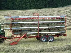 Die meisten anderen Geräte bestehen aus einem Fahrwerk mit Kratzboden sowie einer Gabel zum Aufnehmen der Ballen. Diese Gabel befindet sich während der Aufnahme seitlich des Fahrwerks, nimmt den Ballen auf und hebt ihn auf das Fahrwerk. Je nach Ausstattung können mehrere Ballen übereinander gestapelt werden. Per Kratzboden werden die Ballen nach hinten befördert. Moderne Geräte kippen den Boden nach hinten, sodass eine Miete am Feldrand aufgestellt werden kann.