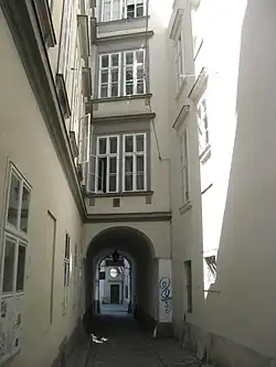 Das josephinische Wohnhaus wurde 1785 von Josef Meissl errichtet und 1992 bis 1998 restauriert. Hier wohnten 1809 Ludwig van Beethoven, 1823–26 Franz Grillparzer und 1823 Ignaz Franz Castelli. Die gerahmten Fenster sind im Obergeschoß gerade verdacht, die Fassade ist durch Kordongesimse gegliedert und besitzt ein Attikageschoß. Das Rundbogenportal mit Segmentbogenverdachung wurde erneuert, während die Holztüre original ist. Im Innenhof befinden sich auffallende frühklassizistische zylindrische Stiegenhäuser, die zu Pawlatschen offen sichtbar sind. Im Keller gibt es noch Reste des einstigen hier befindlichen Himmelpfortklosters aus dem 1. Viertel des 17. Jahrhunderts.