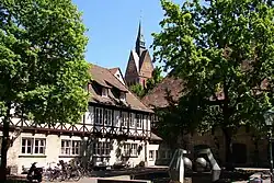 Das ehemalige Spittahaus war das BDM-Heim. An der Fassade befindet sich ein Spruch des nationalsozialistischen Dichters und Judenhassers Georg Stammler (1872–1948), der die Jugend indirekt zu Eroberung und Mord auffordert: „Wir Jungen haben die Aufgabe neue Wege zu suchen und zu bahnen und den Mut sie zu gehen“. Noch heute ist auf einem Kapitell am ehemaligen BDM-Heim die Sig-Rune – das Emblem des Deutschen Jungvolks – mit einer Wolfsangel verziert zu sehen. Die Verwendung beider Symbole ist heute in der Bundesrepublik Deutschland verboten,[9] kann aber in geschichtlichem Zusammenhang zulässig sein.