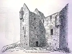 Im Februar 1685 wurde Sir George Mackenzie, 2. Baronet of Tarbat, zusätzlich der Titel eines Lord Castlehaven verliehen.[12] Der Name bezog sich auf die an der Nordküste von Tarbat gelegene Anlage Castlehaven, die lange als Ruine einer Burg oder Festung betrachtet wurde,[13] nach heutigem Stand der Forschung aber als Überrest eines eisenzeitlichen Duns angesehen wird.[14] In der Folge wurde die Ortschaft Portmahomack in Castlehaven umbenannt[15] und auch für Tarbat Castle kam der Name in Gebrauch. Beides blieb nicht von Dauer: im Falle der längst verlassenen Burg setzte sich ab der zweiten Hälfte des 18. Jahrhunderts die zuvor bereits lokal gebräuchliche Bezeichnung Ballone Castle durch.