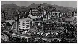 - Kosthaus, nach Entwurf von Karl Moser 1919 fertiggestellt, das halbrunde Rasenrondell vor dem Gebäude wurde 1923 angelegt