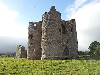 Erbaut im 13. Jahrhundert wurde das Anwesen ursprünglich mit einem eigenen Burggraben versehen. Es bestand aus einem Hof von etwa 43 Metern Länge und 46 Metern Breite der von einer Mauer aus unbehauenen Granitblöcken umgeben war und auf dem sich ein rechteckiges Gebäude befand. Das Gebäude war zunächst im Besitz einer Familie mit dem Namen Kavanagh und ging später auf die Familie Bagenal über. Im 18. Jahrhundert wurde es als Landhaus genutzt. Heute sind von dem Anwesen nur noch ein Tor, zwei Ecktürme sowie das frühere Torhaus vorhanden. Die Ruine ist als National Monument eingetragen und kann besichtigt werden. Das Innere des Torhauses ist ebenso heute noch zu betreten wie einer der beiden Türme.