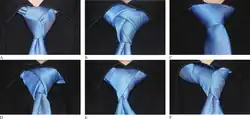 Für das Binden wird eine Krawatte mit „leichtem Stoff“ wie Chiffon empfohlen.[1] Zudem ist eine schmale Krawatte vorteilhaft.[7] Gestartet wird mit der Naht auf der Außenseite, wobei das schmale Ende der Krawatte sich sehr weit oben befindet. Das breite Ende wird unter dem dünnen Ende nach rechts gezogen und kommt dann von rechts oben über das dünne Ende hinter dem Knoten nach unten links. Von links kommt das breite Ende ebenso auf die andere Seite, woraufhin beide Schritte wiederholt werden. Danach kommt das breite Ende über die Vorderseite, wodurch sich die Schlaufe bindet, die den sichtbaren Teil der Krawatte bildet. Durch diese Schlaufe wird das breite Ende gezogen.[2]