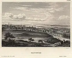 Am 28. Dezember 1827 legte in Baltimore die Baltimore-und-Ohio-Eisenbahngesellschaft den Grundstein für die erste Eisenbahnlinie der USA, die am 24. Mai 1830 feierlich eröffnet wurde. Sie war zunächst als Pferdebahn geplant; nach einem Wettrennen zwischen der Lokomotive Tom Thumb und einem Pferd musterte man bereits am 31. Juli 1831 alle Rösser aus und ging zu Dampfbetrieb über, obgleich das Pferd gesiegt hatte. 1835 kam es in Baltimore zu einer der schwersten Unruhen des 19. Jahrhunderts in den USA, nachdem die Bank of Maryland zusammengebrochen war und Anleger ihre Ersparnisse verloren hatten.[4] Beim Eingreifen der Miliz wurden zwanzig Menschen getötet und rund einhundert verletzt.[5]