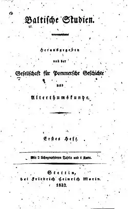 Die Baltischen Studien wurden 1832 von der Gesellschaft für pommersche Geschichte und Altertumskunde als Jahrbuch des Vereins begründet. Die neue Zeitschrift füllte die Lücke, die mit der Einstellung der Neuen Pommerschen Provinzialblätter entstanden war.