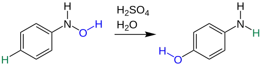 - ↑ Takaaki Sone, Kazuhiro Hamamoto, Yoshiyuki Seiji, Seiji Shinkai, Osamu Manabe: Kinetics and mechanisms of the Bamberger rearrangement. Part 4. Rearrangement of sterically hindered phenylhydroxylamines to 4-aminophenols in aqueous sulphuric acid solution. In: Journal of the Chemical Society, Perkin Transactions 2. Nr. 12, 1981, S. 1596–1598, doi:10.1039/p29810001596.
