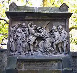 Von den traditionellen 14 Stationen (siehe Kreuzweg) sind in Bamberg nur neun ausgeführt.