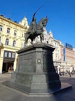 Auf dem Platz befindet sich die große Reiterstatue des Ban Josip Jelačić. Die Skulptur wurde vom österreichischen Künstler Anton Dominik Fernkorn geschaffen und am 19. Oktober 1866 eingeweiht. Demonstrativ zeigte der Säbel des Feldherrn in Richtung Budapest. Im Jahr 1947 wurde die Statue von der damaligen kommunistischen Regierung Jugoslawiens entfernt, da Jelačić nicht als historisch zu würdigende Persönlichkeit angesehen wurde, weil er als kaiserlicher Loyalist führend an der Niederschlagung der Revolution von 1848 beteiligt war. Antun Bauer rettete die Statue vor der Zerstörung, indem er sie in den Kellerräumen der Galerie Gliptoteka versteckte. Kurz vor der Erlangung der staatlichen Unabhängigkeit Kroatiens wurde die Statue am 16. Oktober 1990 an ihrem ursprünglichen Platz wiedererrichtet und der Platz erhielt seinen alten Namen zurück. Allerdings wurde die Richtung der Statue geändert: der Säbel des Feldherren zeigt nun weg vom alten Gegner Ungarn nach Süden.