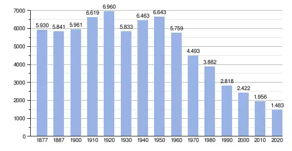 Nach einem Anwachsen der Gemeindegröße auf über 6000 Einwohner zu Beginn des 20. Jahrhunderts sank die Zahl der Bevölkerung in der Folgezeit bis unter 1500.