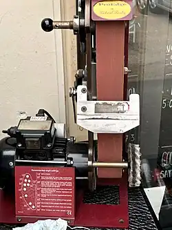- ↑ Wolfgang Heidtmann, Martin Pischel: Bandschleifen mit Schleifmitteln auf Unterlage in: Uwe Heisel, Fritz Klocke, Eckart Uhlmann, Günter Spur: Handbuch Spanen. 2. Auflage, Hanser, München, 2014, S. 697f.