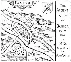 Der Name Bangor stammt aus dem Walisischen und bedeutet ungefähr „eingezäuntes Grundstück“ und bezieht sich wohl auf das Gelände der ursprünglichen Kathedrale. Die heutige Kathedrale ist jüngeren Datums und wurde während der Jahrhunderte immer wieder umgestaltet. 1557 wurde die noch heute bestehende Friars School als eine Grammar School von Geoffrey Glyn gegründet.