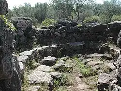 Bankaltar in einer sardischen Rundhütte (italienisch Capanna circolare)