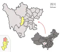 - ↑ a b c d e Landkreise unter der Gerichtsbarkeit der Stadt Ya’an, Provinz Sichuan bei baike.baidu.com, abgerufen am 27. Januar 2023.