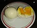 - ↑ Xian yadan (鹹鴨蛋 / 咸鸭蛋, xián yādàn, Jyutping haam1 aap3daan6) sind salzig eingelegte Enteneier