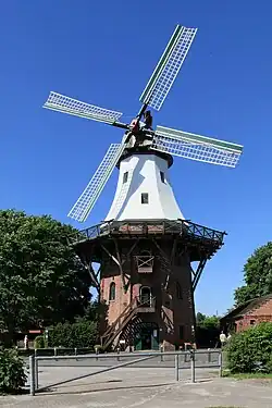 - Ebkenssche Windmühle, seltener Galerieholländer von 1854 mit Betonachtkant, großteils gusseisernem Antrieb, drei Getreidegängen inkl. Peldegang, Kollergang (Ölmühle); Aufzug und Außentreppe[10]