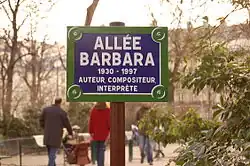 Schild der Allée Barbara am Square des Batignolles in Paris