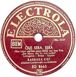| Que sera, sera / Du bist lieb | 8663 | 1/1957 |