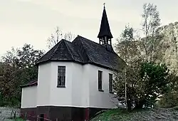 Die Barbarakapelle ist ein einfaches Bauwerk, das nach Plänen von Fidelius Schmid 1953/54 errichtet wurde. Das Gebäude ist ein einschiffiger Kirchenbau mit im Westen aufgesetztem gemauerten Dachreiter. Es ist nach Südosten ausgerichtet und im Süden ist an den Chor eine Sakristei angebaut. Das gesamte Bauwerk steht unter Denkmalschutz (Listeneintrag).[3][2]