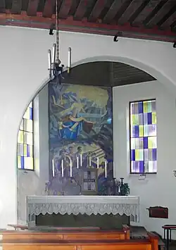 Der einfache Altar wurde aus Marmor gefertigt. Auf ihm steht ein Tabernakel mit einem Kreuzsymbol auf der Tür. An der Stirnseite des Chors hängt das 1955 von Erwin Exner gemalte Altarbild. Es zeigt die heilige Barbara, die über vier Bergarbeitern schwebt, die gerade einen Stollen graben. Die Bergarbeiter tragen zeitgenössische Arbeitskleidung.[2]