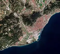 Barcelona liegt im Nordosten der iberischen Halbinsel an der Küste des Mittelmeeres auf einem fünf Kilometer breiten Plateau, das von der Bergkette Serra de Collserola und den Flüssen Llobregat im Süden sowie Besòs im Norden begrenzt wird. Die Pyrenäen liegen circa 120 Kilometer nördlich der Stadt.
