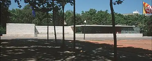 Als Barcelona-Pavillon (auf Katalanisch Pavelló alemany „Deutscher Pavillon“ bzw. Pavelló Mies van der Rohe) wird der Ausstellungspavillon des Deutschen Reichs auf der Weltausstellung 1929 in Barcelona (Exposició Internacional de Barcelona) bezeichnet, den der deutsche Architekt Ludwig Mies van der Rohe (1886–1969) in Zusammenarbeit mit Lilly Reich[1] (1885–1947) entwarf. Der Deutsche Pavillon diente der Selbstdarstellung der Weimarer Republik und sollte durch seine Neuartigkeit und Präzision die Leistungsfähigkeit der deutschen Industrie und des Handwerks symbolisieren. Nicht zuletzt durch seinen Wiederaufbau wird der Pavillon als eine der Architekturikonen des 20. Jahrhunderts bestätigt. Der Bau gilt als Vorbild für die Weiterentwicklung van der Rohes Idee der „gläsernen Halle“, die er später im Bau der Neuen Nationalgalerie vollendet.[2]