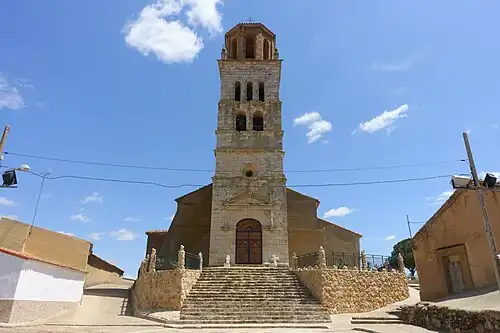 - Die im 16. Jahrhundert größtenteils aus Ziegelsteinen erbaute Iglesia de San Pelayo ist dem halb legendenhaften Jüngling und Märtyrer Pelagius von Córdoba (um 912–926) geweiht. Die Westseite des in seinem Aufbau auf romanische Vorbilder in den Pyrenäen Bezug nehmenden Glockenturms ist aus exakt behauenen hellen Natursteinen errichtet. Dem einschiffigen Kirchenbau ist auf der Südseite ein Portikus (portico) oder (galería porticada) vorgelagert – ein Element der kastilischen Architektur des 11. und 12. Jahrhunderts (z. B. in den Provinzen Burgos, Segovia und Soria). Teile des Inneren der Kirche sind mit hölzernen Artesonado-Decken gedeckt. Der Chorbereich wurde im 18. Jahrhundert verändert, doch der Hochaltar von 1525 blieb erhalten.[8]
