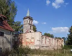 - Ruine Schloss Berthelsdorf[2]: Das Schloss wurde 1772 von Graf von Rothkirch an der Stelle einer früheren Gründung aus dem 16. Jahrhundert errichtet. Davon zeugt der steinerne Arkadengang des Tores, der in der den Komplex umgebenden Mauer aus dem Jahr 1565 erhalten ist. Beim Umbau um 1890 wurde an der Nordseite ein Turm angebaut. Bis 1945 war es im Besitz der Familie von Wartenberg. Nach dem Krieg sollte das Schloss die Sommerresidenz des Präsidenten der Republik Polen werden, wurde aber schließlich dem örtlichen Staatsgut übergeben. Seit den 1980er Jahren nicht mehr benutzt, verfiel es zur Ruine.