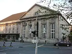Der rechteckige Muschelkalkbau in neoklassizistischen Formen ist neunachsig mit Pilastergliederung, dazwischen mit rundbogigen Fenstern über dem Sockelgeschoss. Von den beiden seitlich vorgezogenen fünfachsigen Risaliten mit vorgelagerten ionischen Säulen ist nach dem Krieg nur noch der westliche erhalten geblieben.