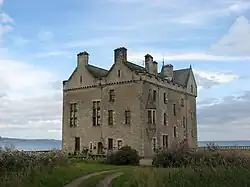 Barnbougle Castle gehörte den Mowbrays, einer normannischen Familie, die ebenfalls die Herren von Dalmeny und Inverkeithing waren.[3] Das erste Gebäude war ein Wohnturm, den Philip Mowbray im 13. Jahrhundert bauen ließ. 1615 verkauften die Mowbrays Barnbougle Castle an Sir Thomas Hamilton, den späteren Earl of Haddington. Dessen Enkel verkaufte das Anwesen 1662 weiter an Archibald Primrose, Lord Carrington, einen älteren Richter, der 1676 zum Lord Justice General von Schottland ernannt wurde. Sir Archibalds ältester Sohn aus zweiter Ehe, ebenfalls Archibald, wurde 1703 zum Earl of Rosebery ernannt und Barnbougle Castle wurde zu seinem Familiensitz. Irgendwann im Laufe des 17. Jahrhunderts wurde der alte Wohnturm abgerissen und durch ein neues Gebäude ersetzt.[4]