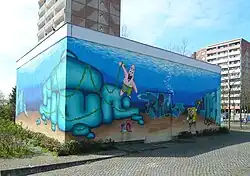 An einem Pumpenhaus am Rande des Platzes und dem südlichen Zugang erfolgten in einer 2008er Aktion „graff that area“ weitere Graffitigestaltungen.[3] Dieses Jugendprojektes wurde von Paul Rutz geleitet, die Entwürfe und Sprayarbeiten führte die Gruppe „Graffitnix“ aus. Aus dem Bürgerhaushalt standen dafür 7700 Euro Fördermittel bereit.