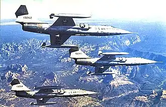 Mit der Beschaffung des F-104G Starfighters für Luftwaffe und Marine der Bundeswehr war auch die Musterausbildung von Piloten auf dem neuen Waffensystem zu regeln. Im April 1963 wurde ein entsprechender Vertrag zwischen der Bundesrepublik Deutschland und den USA geschlossen. Er sah eine Ausbildung deutscher Piloten durch die US Air Force am Standort Luke AFB in Arizona vor. Die technische Betreuung der für die Schulung benötigten Flugzeuge übernahmen zivile Firmen. Mit der eigentlichen fliegerische Ausbildung ab 1964 wurde die 4510th Combat Crew Training Wing (4510 CCTW) beauftragt. Nach deren Außerdienststellung im Dezember 1969 führte die 58th Tactical Fighter Training Wing (58 TFTW) diese Ausbildung weiter. Truppendienstlich und disziplinar unterstanden die deutschen Lehrgangsteilnehmer der am Standort Luke AFB von der Luftwaffe neu aufgestellten 2. Deutschen Luftwaffenausbildungsstaffel USA (2. DtLwAusbStff USA). Diese Staffel war auch für die administrative Betreuung der deutschen Soldaten und ihrer Familien zuständig. Die 2. Staffel selbst unterstand dem Deutschen Luftwaffenausbildungskommando USA in Fort Bliss in Texas, welches damals noch ohne den später hinzugefügten Namenszusatz "Kanada" existierte.[13] Zur materiellen Unterstützung der Schulung in den USA kaufte die Bundesrepublik Deutschland zusätzliche einsitzige und doppelsitzige Starfighter und stellte diese der US Air Force in Luke AFB zur Verfügung. Wenngleich in deutschem Eigentum, wurden diese Flugzeuge aus statusrechtlichen Gründen mit Markierungen und Kennzeichen der US Air Force betrieben.[14][15][16]