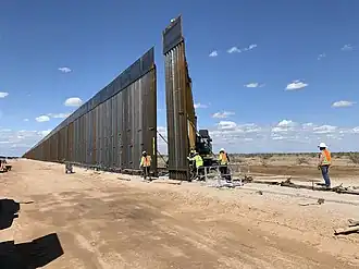 - ↑ Crews install a three-ton, 30-foot barrier panel at the Barry M. Goldwater Range, Defense Visual Information Distribution Service, by James Woods (U.S. Army Corps of Engineers, South Pacific Border District), dated 3 March 2020, last accessed 18 July 2020