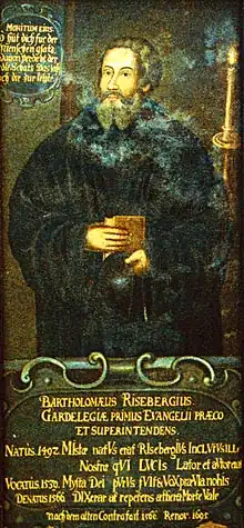 Bartholomaeus Rieseberg (* 24. August 1492 in Mieste; † 10. August 1566 in Gardelegen; auch Bartholomaeus Riseberg) war evangelischer Theologe und Schüler Martin Luthers.