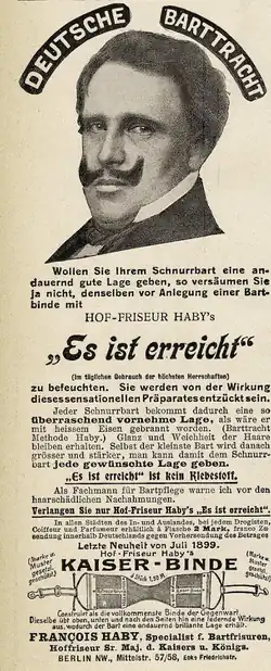 Zu den bekannten Herstellern von Bartwichse zählte etwa der Hoffriseur Kaiser Wilhelms II., François Haby.