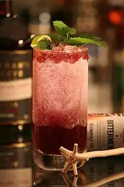 - Swizzle Stick: naturbelassener Rührstab aus Holz, dessen Stiel zwischen den Handflächen gedreht wird. Er wird vor allem bei der Zubereitung einiger Tiki-Drinks eingesetzt, die mit Crushed Ice zubereitet werden.